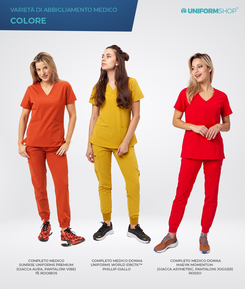 Per molti anni, medici, infermieri e altri operatori sanitari non hanno avuto altra scelta che indossare semplici camici bianchi. Di recente le cose sono cambiate. Casacche, giacche, tuniche, gonne e camici da laboratorio sono disponibili in una gamma abbagliante di colori e modelli alla moda. Grazie a questa scelta incredibilmente ampia, infermieri, medici e tecnici di laboratorio possono esprimere il proprio stile per apparire alla moda e professionali allo stesso tempo.