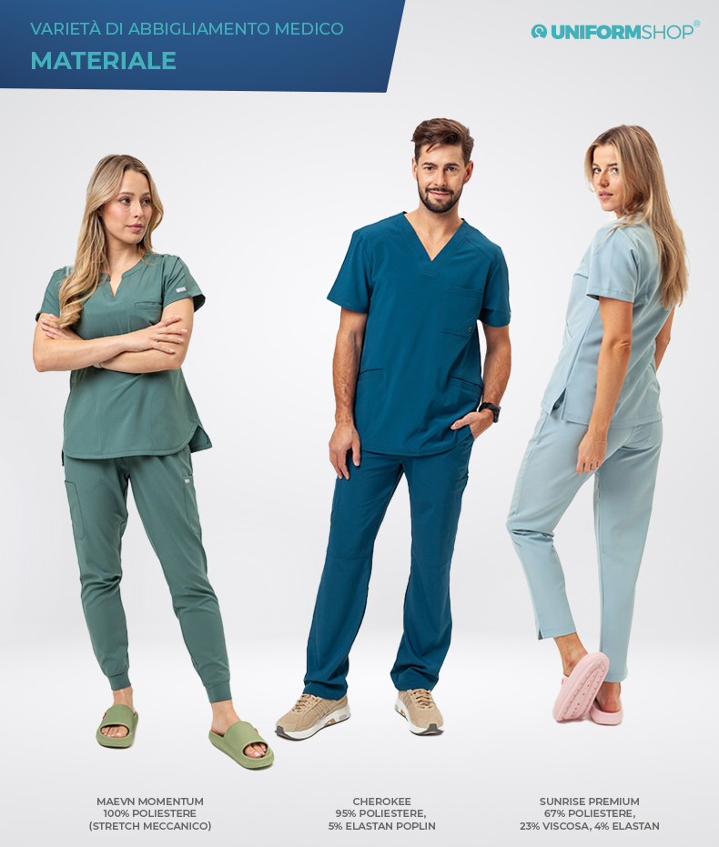 I tessuti flessibili sono molto pratici perché non limitano i movimenti e assorbono efficacemente l’umidità, aumentando il comfort. Alcune miscele tessili rendono gli indumenti medici resistenti alle macchie. Con questi scrub, potrai avere un aspetto fantastico e sentirti asciutta e fresca per tutto il giorno?